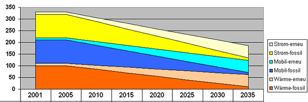 Deckung des Restbedarfes aus erneuerbaren Energiequellen wie Sonne, Wasser, Wind und Biomasse.
