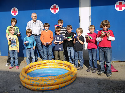 Beinahe wird das Planschbecken zu klein, um alle in Freilassing gefertigten Boote aufzunehmen