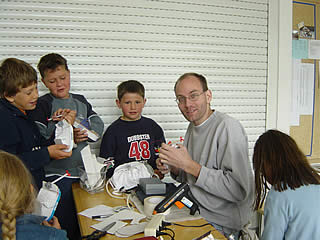 Kursleiter Hermann Schubotz lötet die Solarzelle an. |