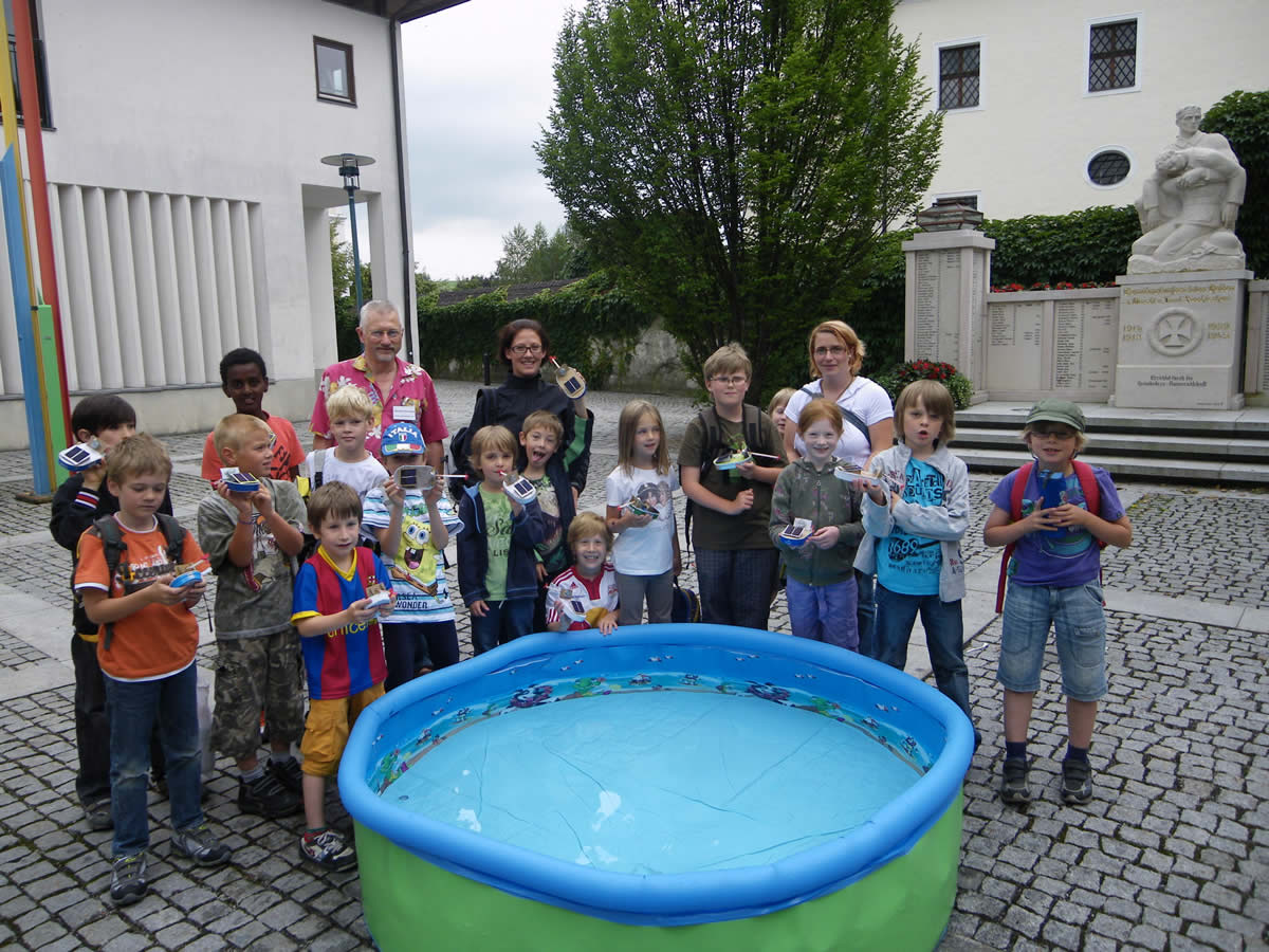 Solarboote basteln mit Hermann Schubotz in Oberbayern, Berchtesgadener Land, Traunstein, Altötting, Mühldorf und Kreis Kelheim und im Salzburger Land, damit Kinder den Nutzen der kostenlosen Sonnenenergie spielerisch kennenlernen können, ihr Energierbewusstsein stärken und mehr ans Energiesparen denken und darauf achten.