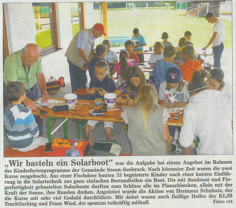 Liebe Kinder und Eltern, wenn Sie/Ihr Kopien der nachfolgenden Fotos haben wollt, entweder das Foto selber speichern oder mit der rechten Maustaste auf dem Foto klicken und den Namen merken, z.B. solarbasteln2011-seeonxxx.jpg und mir diesen Bildnamen an Hermann@solarbasteln.de senden. Ich sende Euch dann das Foto in voller Auflösung zu.