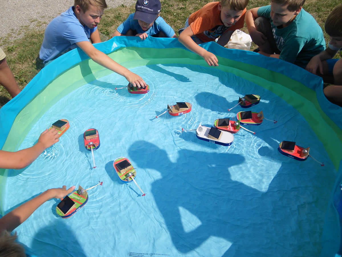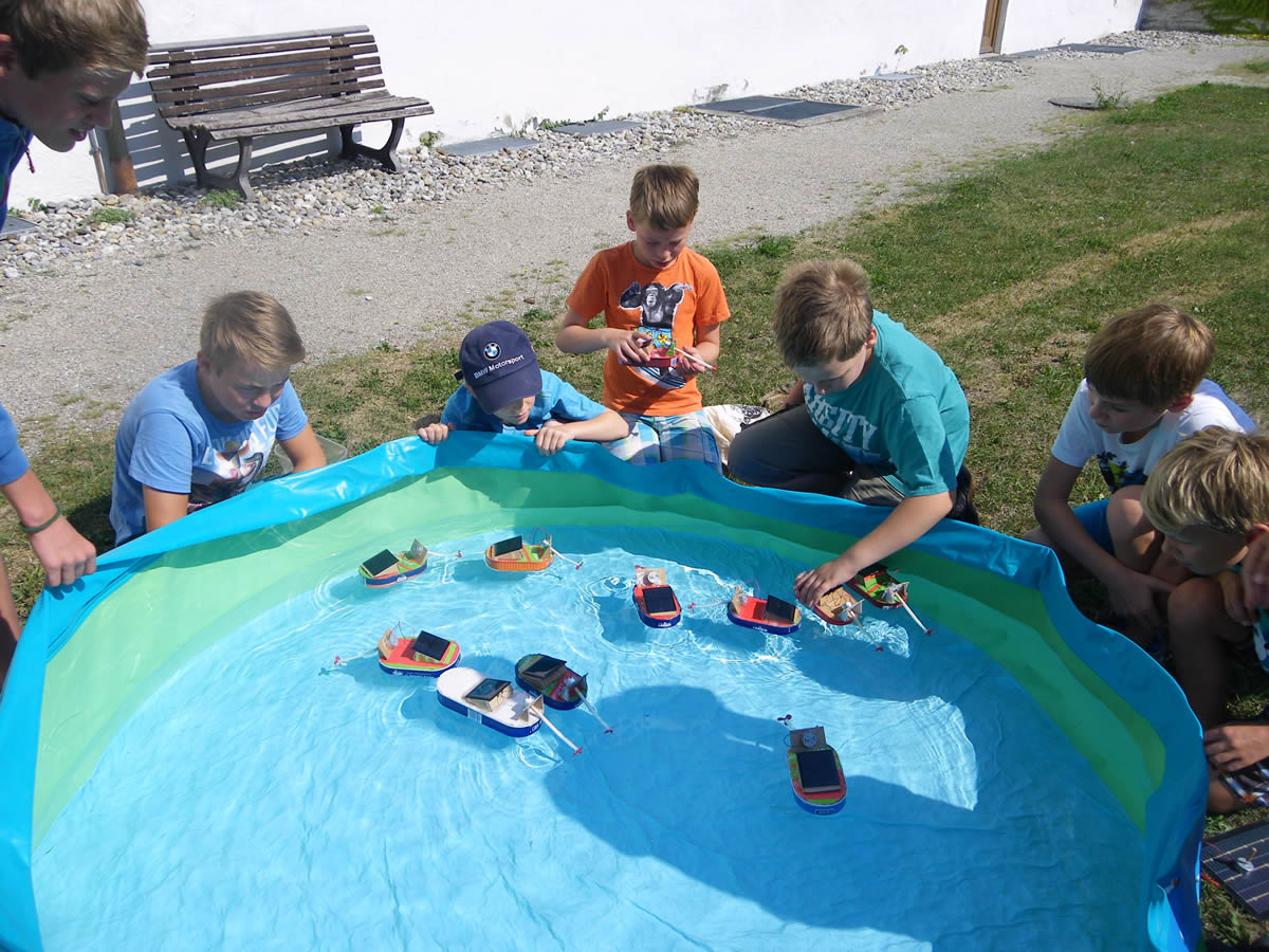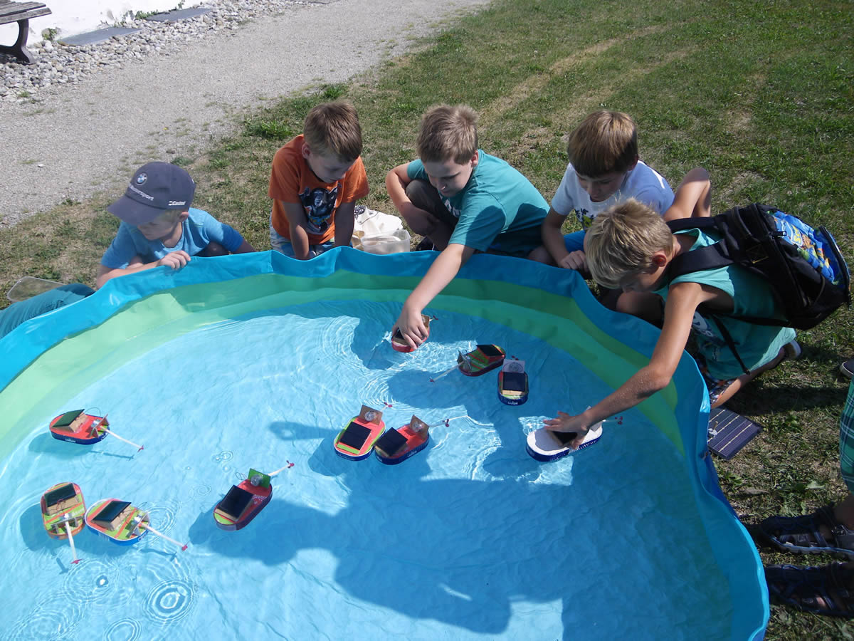 Solarboote basteln mit Hermann Schubotz in Oberbayern, Berchtesgadener Land, Traunstein, Altötting, Mühldorf und Kreis Kelheim und im Salzburger Land, damit Kinder den Nutzen der kostenlosen Sonnenenergie spielerisch kennenlernen können, ihr Energierbewusstsein stärken und mehr ans Energiesparen denken und darauf achten.