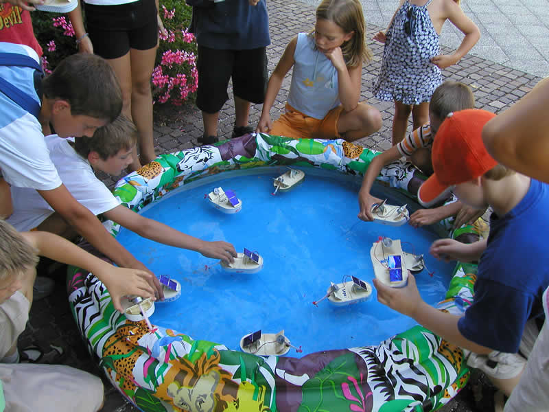 wird. Bei Sonnenschein oder gutem Licht drehen dann die fertigen Solarboote