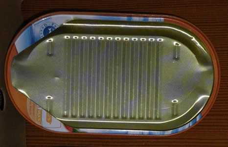 Klebe schnell auf den Steg am Rand der Dose aufbringen.